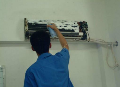 | 海原空调维修师傅给海原用户上门维修清洗空调。 |